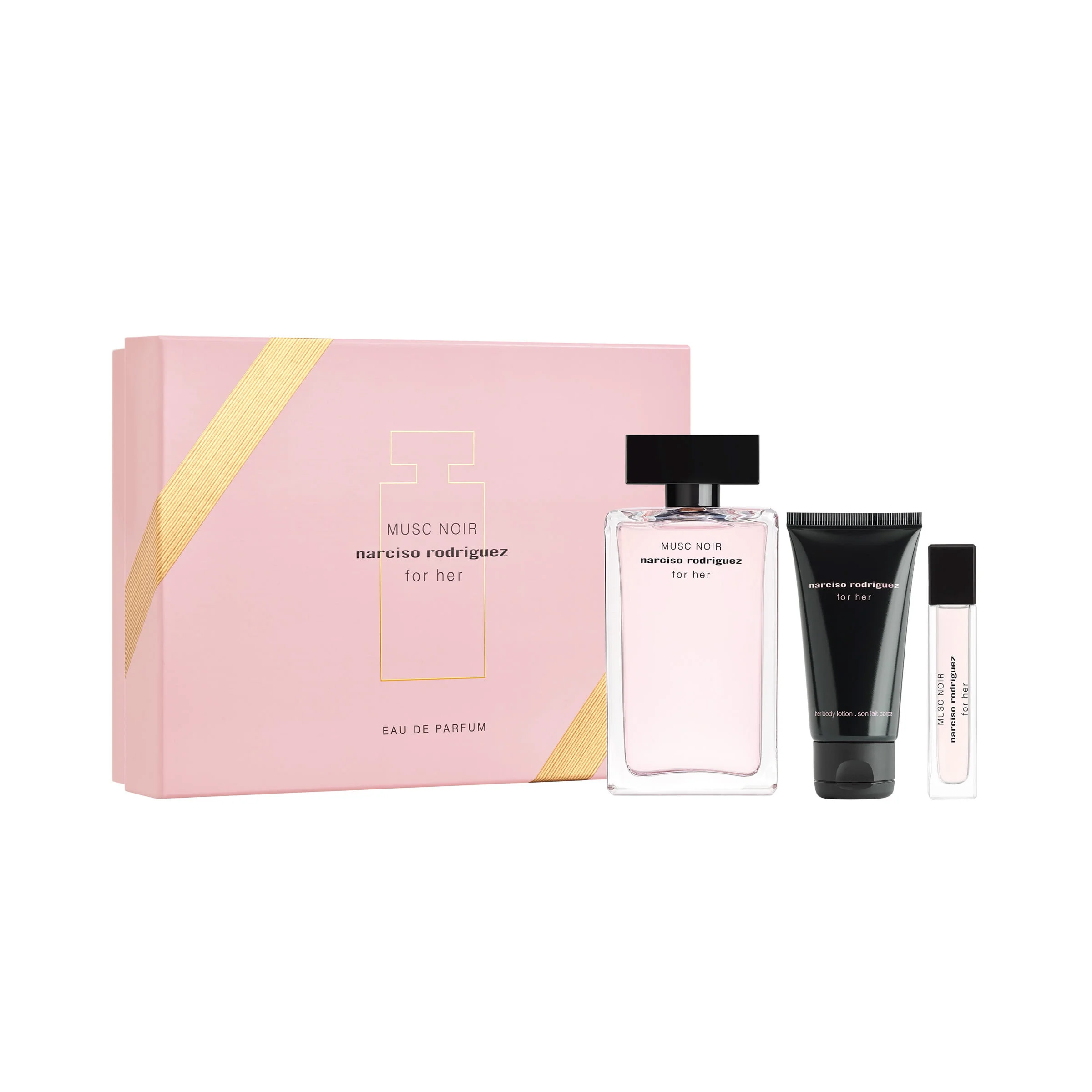 Gift Set contains 100ml Eau de Parfum, 10ml Eau de Parfum and 50ml Body Lotion