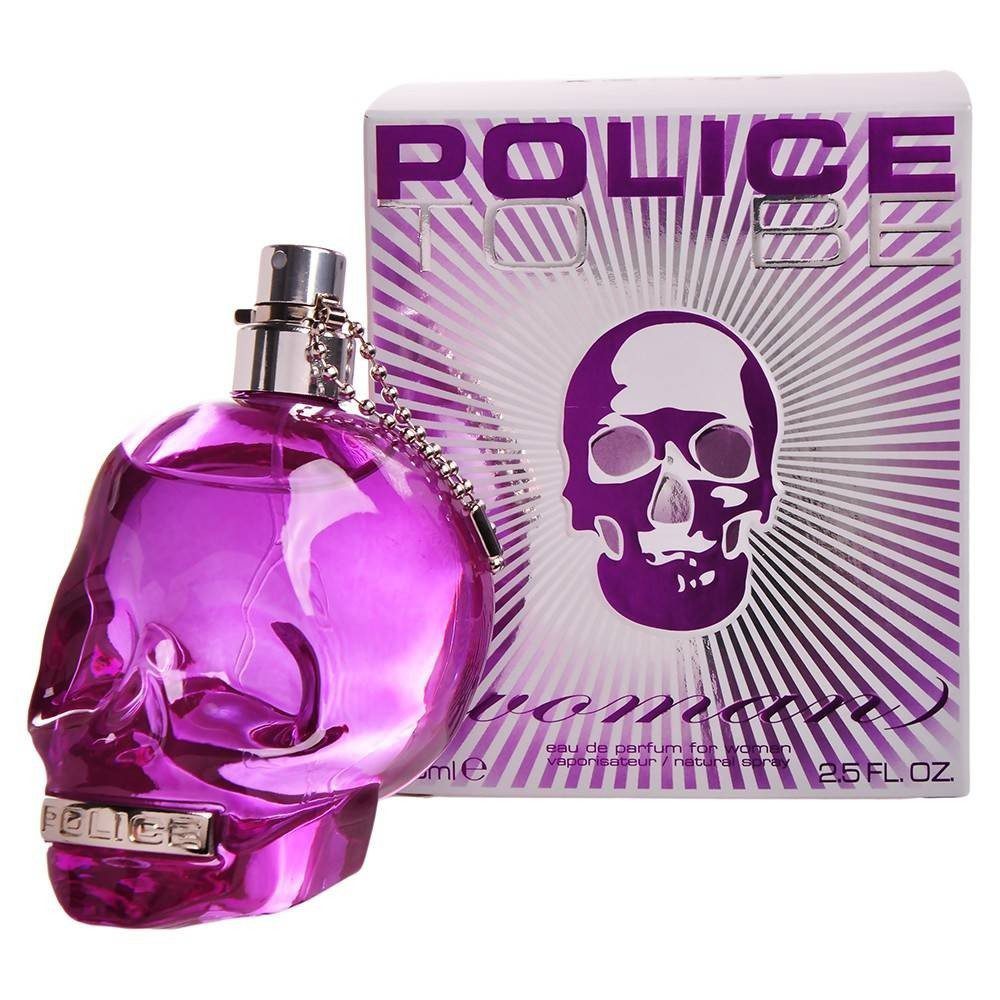 Police To Be Woman perfume comes in a flacon shaped like a purple skull, aimed at the rebellious, energetic woman who attracts attention with her inner strength and sexiness. The composition of the fragrance includes floral, fruity and musky nuances. Top notes provide a fresh and juicy blend of tangerine, lime, and Greeny Smith apple. The heart blooms with white flowers sweetened gently with sweet notes, while the base incorporates precious wood along with musk