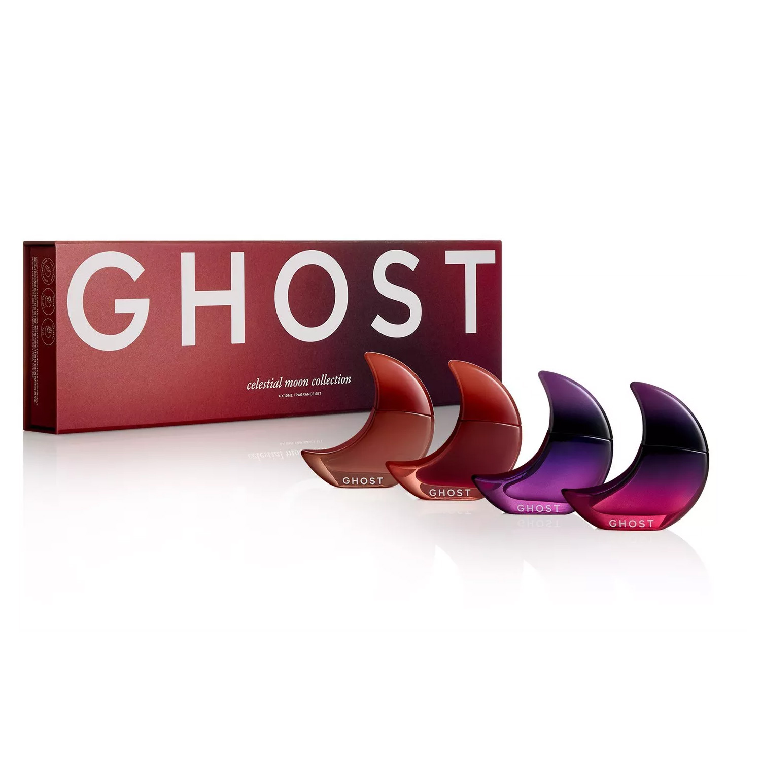 The Ghost Celestial Moon Collection of mini Ghost fragrances lets you shift between radiant allure and deep mystery, carrying the magic of the night wherever you go.