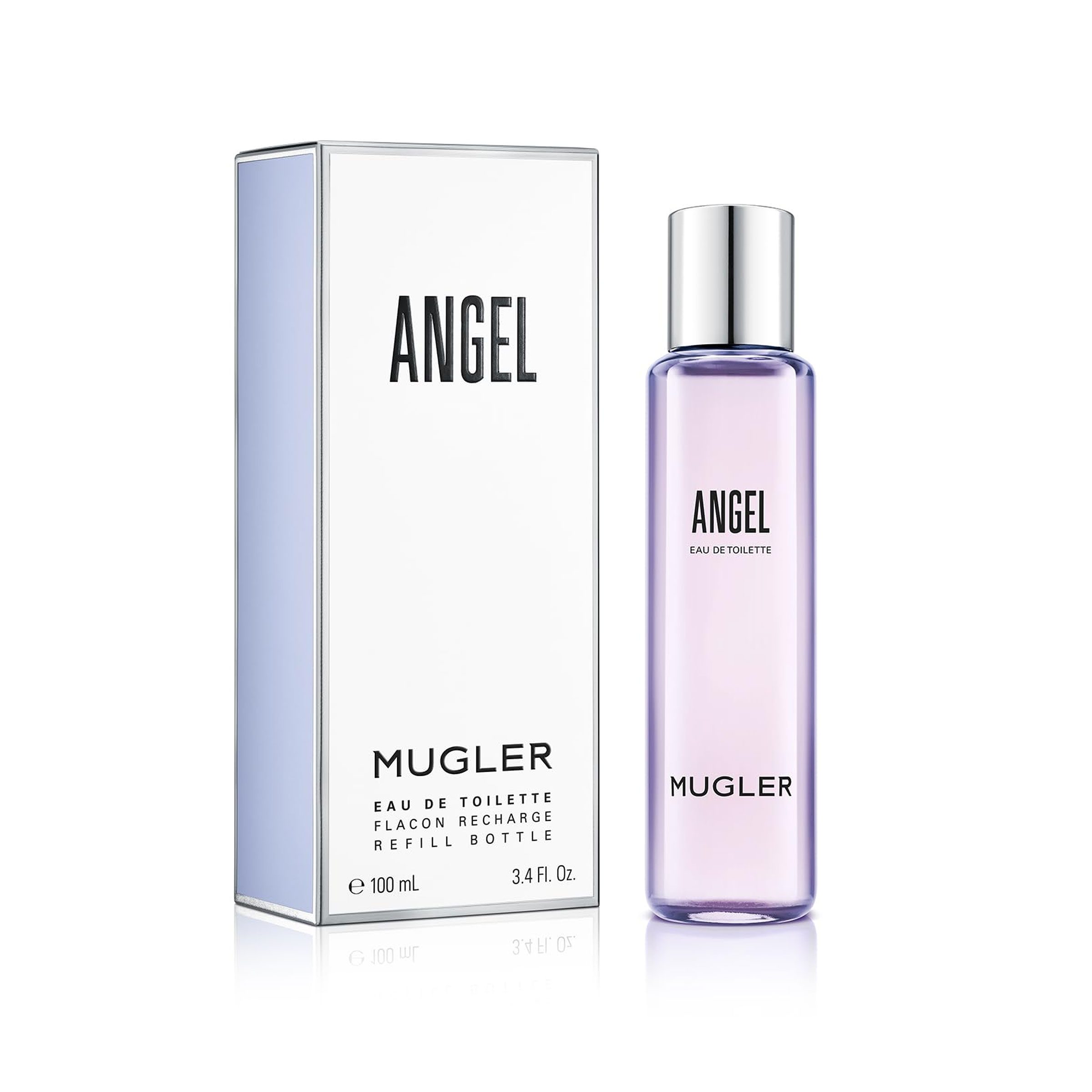 Angel Eau de Toilette by Mugler is a Floral Fruity Gourmand fragrance for women. Mugler Angel Eau de Toilette was launched in 2019. Top notes are Peony and Mandarin Orange. Middle notes are Praline, Apple and Red Berries. Base notes are Patchouli, White Woods and Cedar.